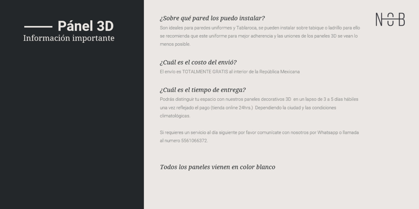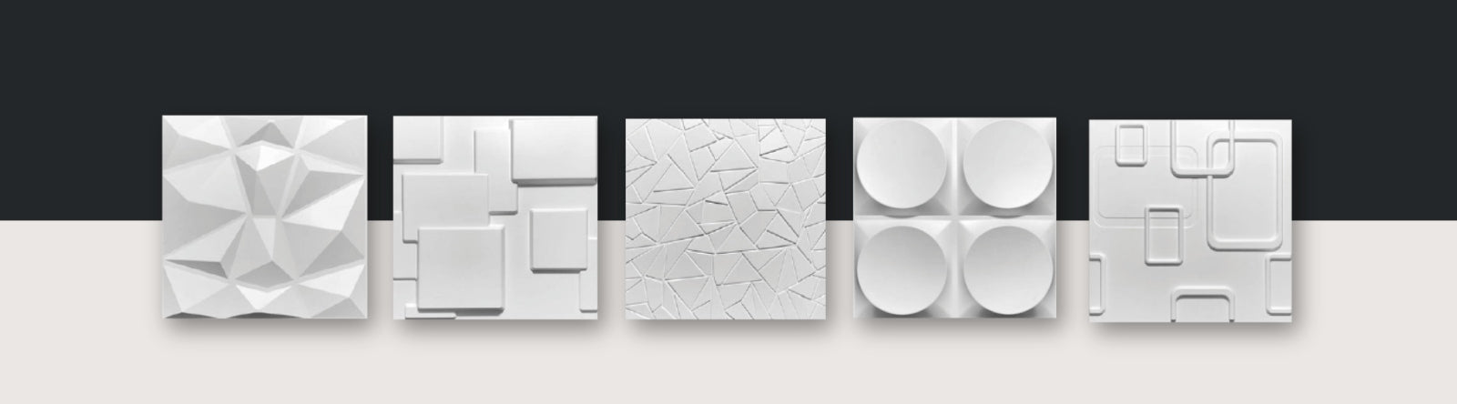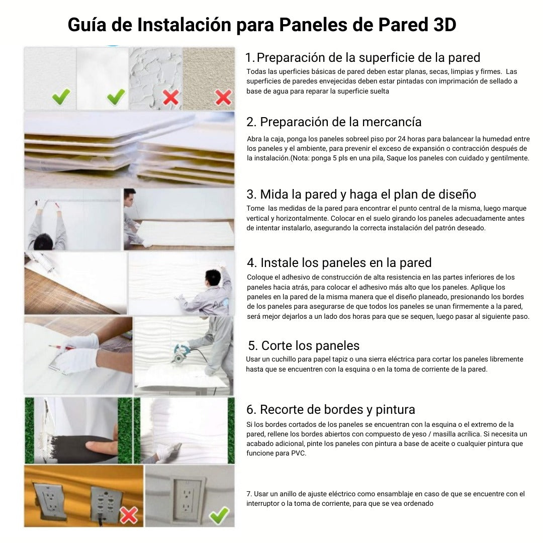 Panel tridimensional fabricado en PVC virgen en color blanco. 12 paneles de 50x50 cm por caja. Una caja cubre 3 metros cuadrados